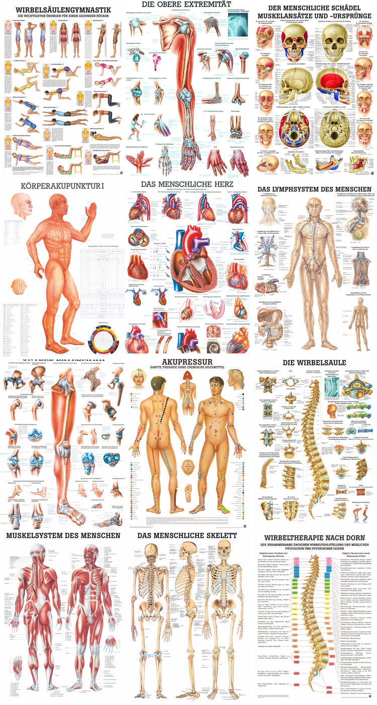 Anhänger und Anwender alternativmedizinischer Methoden finden bei uns eine Vielzahl von Minipostern zu Themen wie Akupunktur, Akupressur, Wirbeltherapie nach Dorn und Craniosacraler Osteopathie. Diese Charts sind nicht nur lehrreich, sondern auch dekorativ und unterstützen die Anwendung und das Verständnis dieser Therapieformen.
