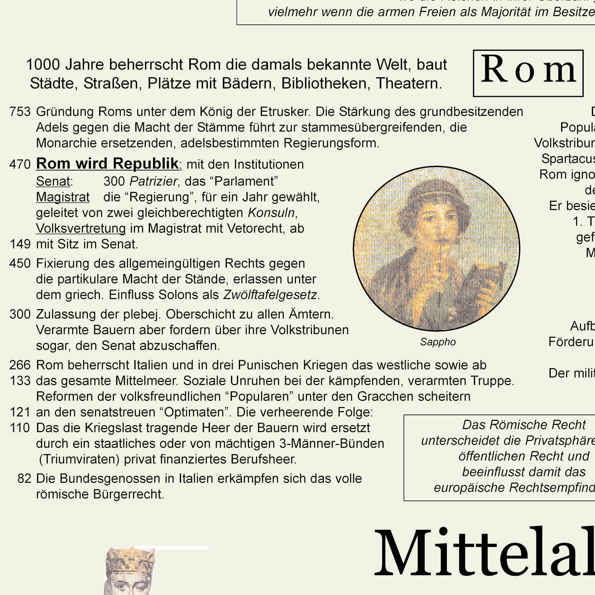 Entdecken Sie die europäische Geschichte mit unserem Übersichtsposter "Die Geschichte Europas". Im großzügigen Format von 60 cm x 80 cm präsentiert dieses Poster auf hochwertigem Kunstdruck-Karton die entscheidenden Epochen und Ereignisse, die den Kontinent geformt haben.
